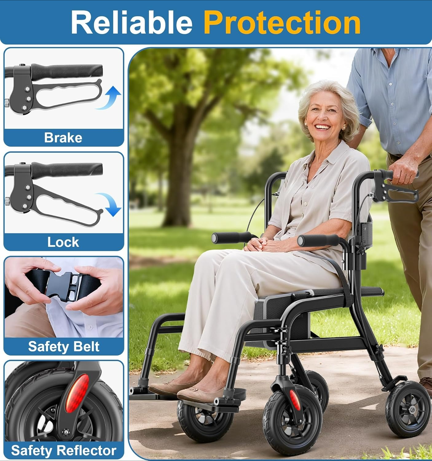 - 2-in-1 Design Easy to Convert Effortlessly switch between rollator and transport chair modes with our intuitive conversion system. This 2-in-1 wheelchair combo requires no tools or complicated steps, allowing for seamless transitions to accommodate different mobility needs throughout the day.